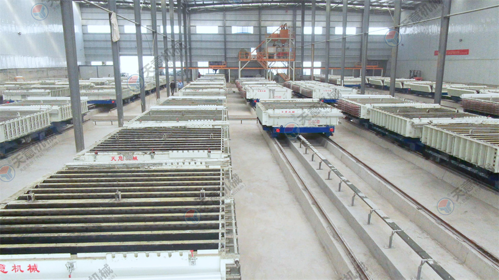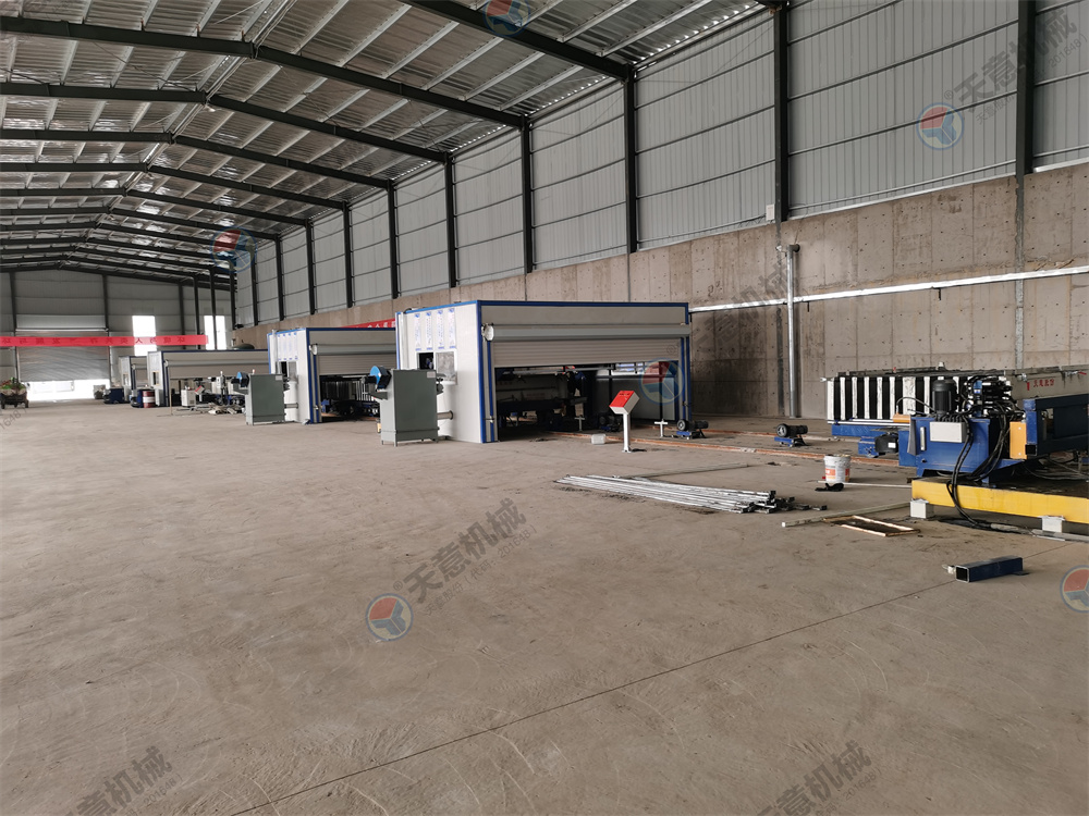 10.墙板机双向开合,采用卯榫工艺焊接,确保大板焊接厚度以至,大板经四面刨铣,能保证生产线上的模车一至,以便于后期整体上成型,自动抽芯机,自动涂油机的安装。