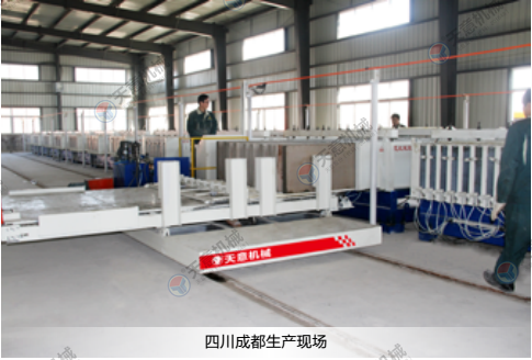 TYF-16B型复合墙板生产线,是我公司自主研发的固定式复合墙板生产线,该生产线投入小,生产产品品质量好,产品成型效率高,可生产多种类型的墙板,配有大型搅拌系统、移动注资系统、整体出板码垛系统等自动化的配置,还配有骨料的输送和计量系统。减少了劳动强度,工人操作更简单方便,提高了生产效率。